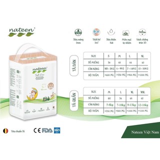 Bỉm dán/quần NATEEN cao cấp BỈ S56/M48/M60/L44/L54/XL48/XXL42