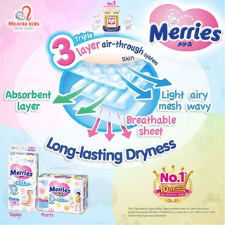 Bỉm Merries Dán Nội Địa Nhật Cộng miếng NB96/S88/M68/L58