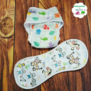BỘ BỈM VẢI, TÃ VẢI/MIẾNG LÓT BAMBOO NATURE BABU LOVE CHỐNG HĂM ( GỒM 1 VỎ + 2 LÓT) SIZE M,L