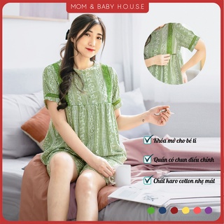 Bộ karo lững 2in1 mặc cả bầu và sau sinh với thiết kế kéo khóa cho bé ti, ở nhà nhưng vẫn xinh xắn mom nhé ☘️🥰🌼