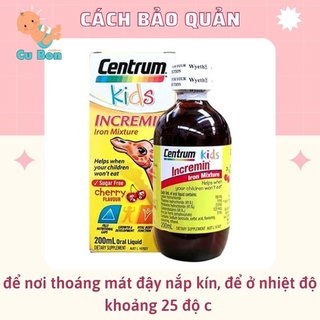 Centrum Kids cho bé biếng ăn Incremin Iron Mixture Úc 200ml dạng siro giúp hấp thu calo dinh dưỡng tốt từ 6 tháng tuổi