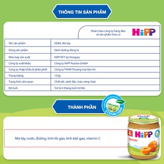 Dinh dưỡng đóng lọ ăn dặm Mơ tây HiPP Organic 125g
