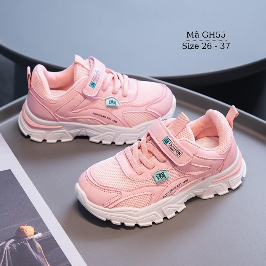 Giày thể thao bé gái đi học đi chơi êm nhẹ thoáng khí màu hồng thời trang cá tính cho trẻ em nữ 3 - 12 tuổi NHÍM SHOP GH55