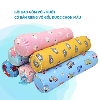 Gối ôm cho bé Dreamhome cotton 100%, vỏ gối ôm cho bé size 20x60 cm ruột gối bông gòn trắng