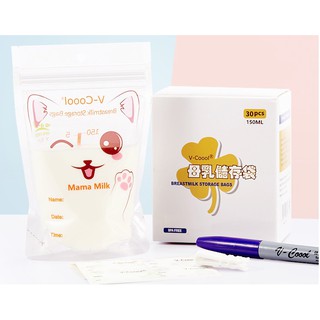 Hộp 30 túi trữ sữa Vcoool cao cấp 150ml (Tặng kèm bút ghi chú)