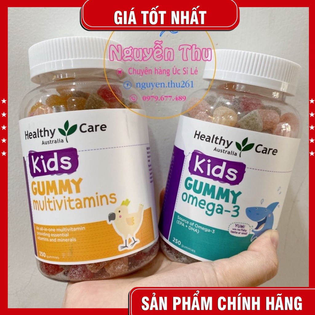 Kẹo nhai Healthy care Gummy Multivitamin và Healthy care Gummy omega3, Lọ 250 Viên