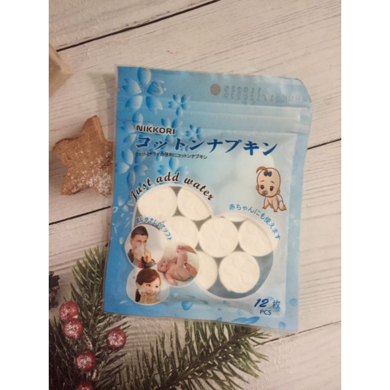 Khăn giấy nén khử trùng đa năng tiện dụng Nikkori Nhật Bàn gói 12 viên