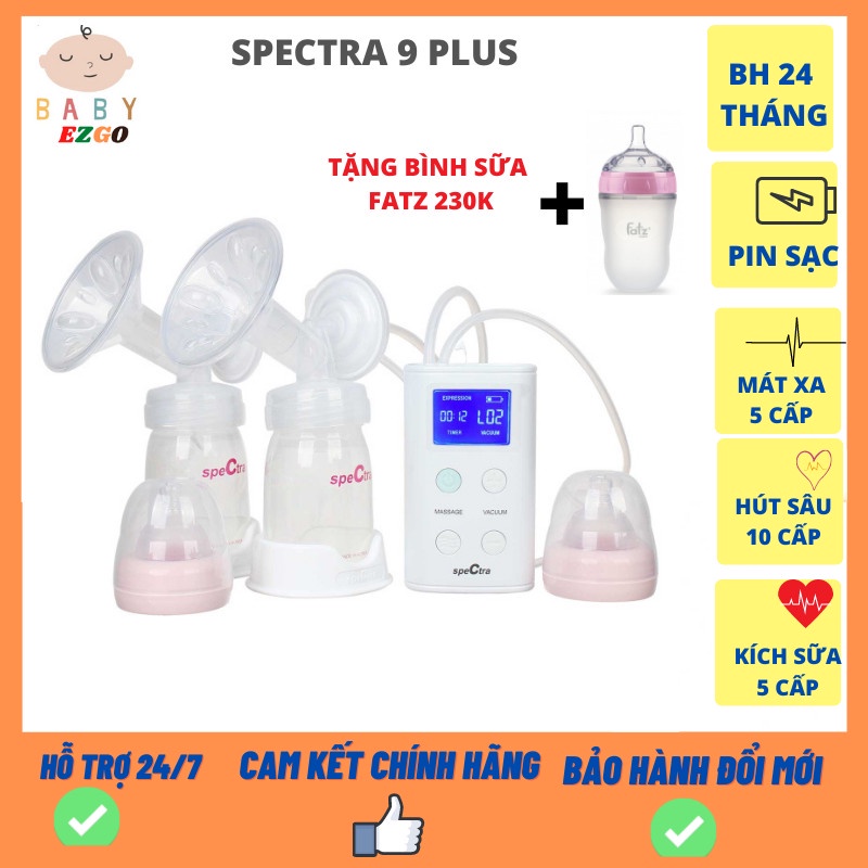 Máy hút sữa Spectra 9 Plus, máy vắt sữa điện đôi chính hãng [BẢO HÀNH 2 NĂM CHÍNH HÃNG]