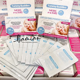 Men vi sinh Tummy Buddies của Anh chứa 7 chủng vi sinh có lợi, giúp hỗ trợ các vấn đề về tieu hóa của trẻ. Sản phẩm thích hợp sử dụng cho trẻ từ 0 đến 12 tháng tuổi.
