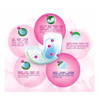 – Công nghệ thoát hơi ẩm : đẩy hơi nóng trong lòng tã ra ngoài giúp da bé luôn khô thoáng ngăn ngừa hăm tã.