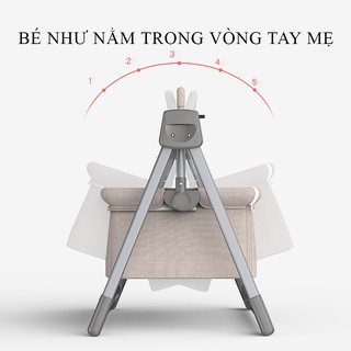 + 5 cơ chế đu đưa, 3 chế độ hẹn giờ, có cài sẵn các bài nhạc ru bé ngủ