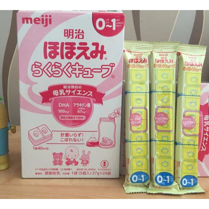 Cách pha: meji thanh số 0-1 ( sơ sinh đến 1 tuổi) : pha 1 viên với 40ml nước với nhiệt độ 70 độ C.