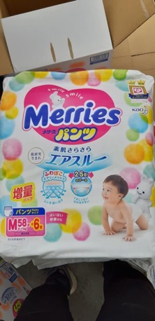 Bỉm merries dán và quần hàng nội địa nhật bịch đại loại thêm miếng đủ size, thêm từ 4 đến 6 miếng tùy size so với hàng nhập khẩu ở Kidsplaza và Bibomart