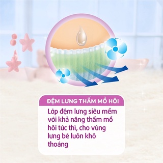 Ứng dụng công nghệ tiên tiến của Nhật Bản, lõi thấm hút được ép chặt giúp tã mỏng nhẹ hơn, cho bé sự thoải mái trong từng cử động.