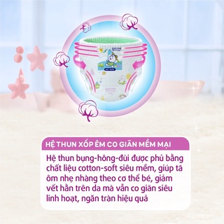 Độ dài từng sợi thun được điều chỉnh dài ngắn phù hợp với bụng, eo và mông bé, co giãn linh hoạt đa chiều theo từng cử động nên luôn ôm vừa vặn, thoải mái.