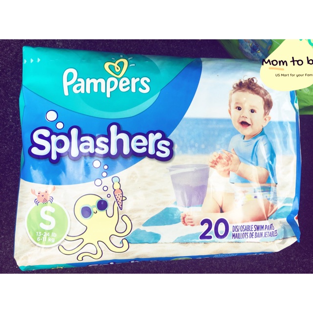 , , Tã dành cho bé đi bơi, Pampers Splashers, 3 size: , - S (20 miếng) - 7-12kg, - M (18miếng) - 11-15kg, - L (17 miếng) >14kg, , Sản xuất và nhập khẩu từ Mỹ, , Tã dành cho bé đi bơi, Pampers...