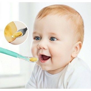 Thìa Nạo Hoa Quả Cho Bé Tập Ăn Dặm 2 Trong 1, Một Đầu Nạo Bằng Inox Và Một Đầu Thìa Mềm Silicon