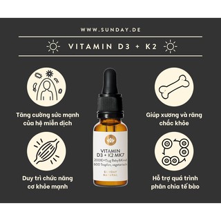 Vitamin D3K2 MK7 sunday natural Đức cho bé hàng Đức, lọ 20ml