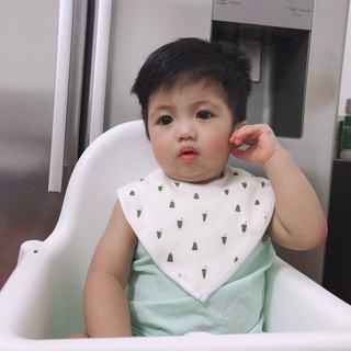 - Yếm tam giác cotton cho bé giúp thức ăn không bị dính vào quần áo.
